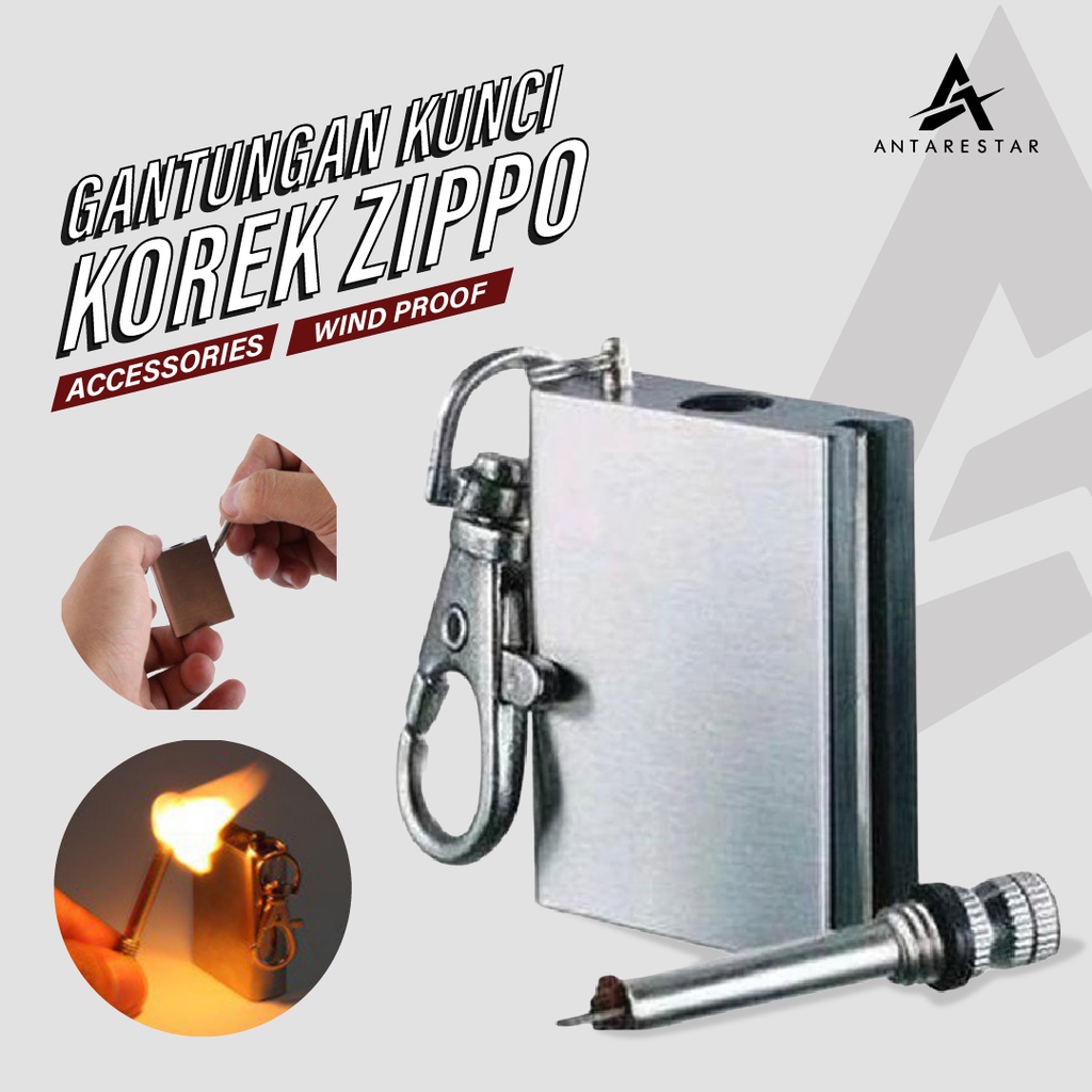 Gantungan Kunci Korek Minyak Kecil Zippo Lighter Survival Matches Mini Universal Kotak Tahan Angin Unik Gantungan Korek Antarestar